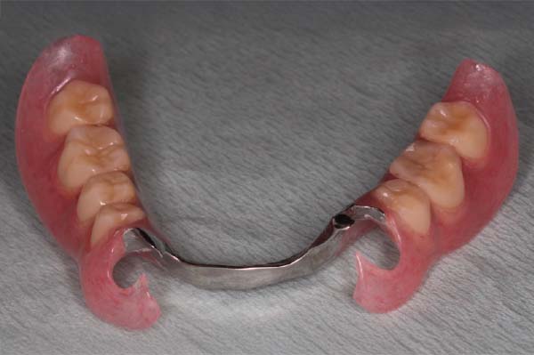 部分入れ歯の金属のバネは、形態や種類を工夫することで目立ちにくくすることが可能です。
